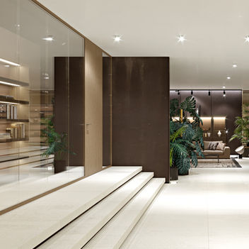 Wall Glass and Wood Door